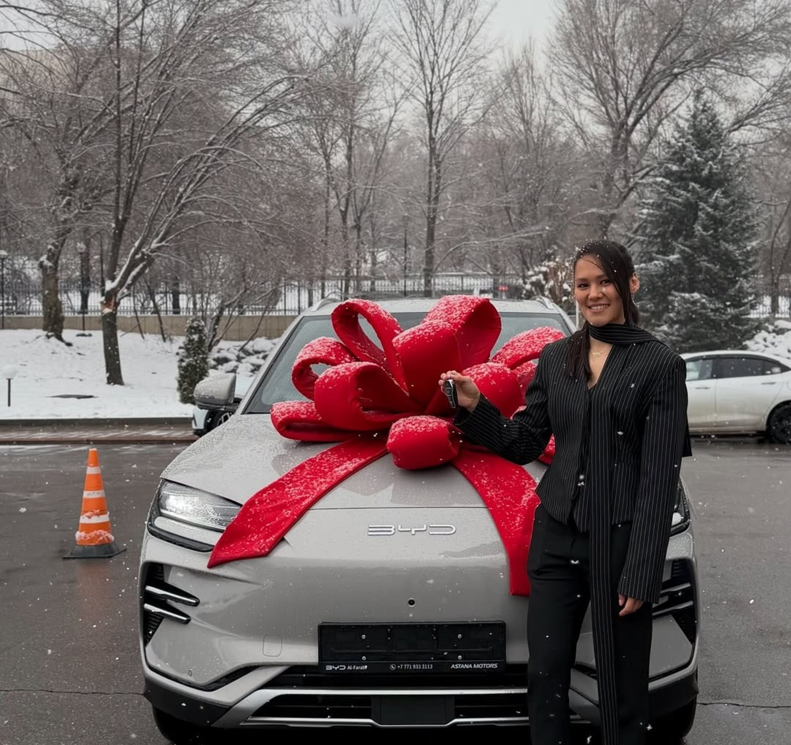 Алуа автокөліктің жанында, үстіне қызыл бантик тағылған жаңа көлікпен түскен суретін жариялады. Боксшының айтуынша, бұл сыйлықты оған Алматы қаласының бокс федерациясы табыстаған көрінеді.