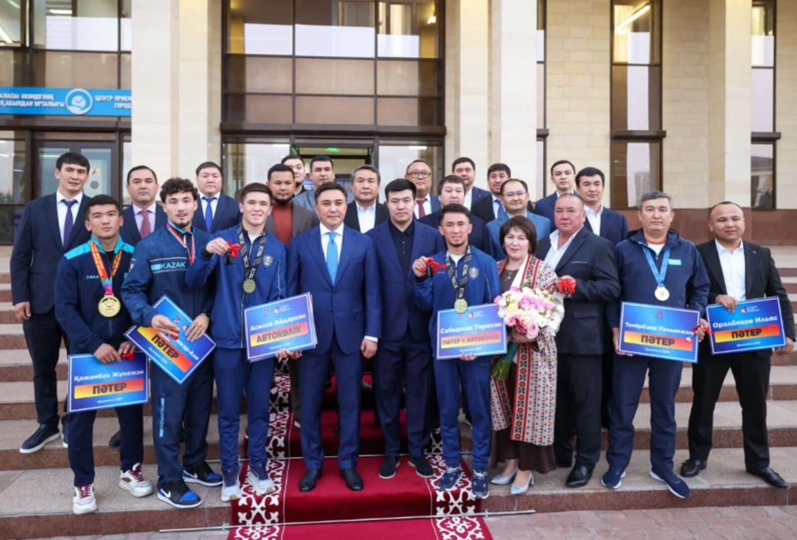 Шымкентте ағайынды Сабырхандарға – пәтер мен көлік, ал олардың бапкері Ілияс Оралбековке пәтер сыйға берілді.